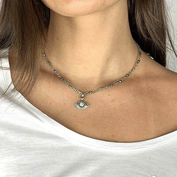 Misty Green Evil Eye Necklace with Cat's Eye Stones
