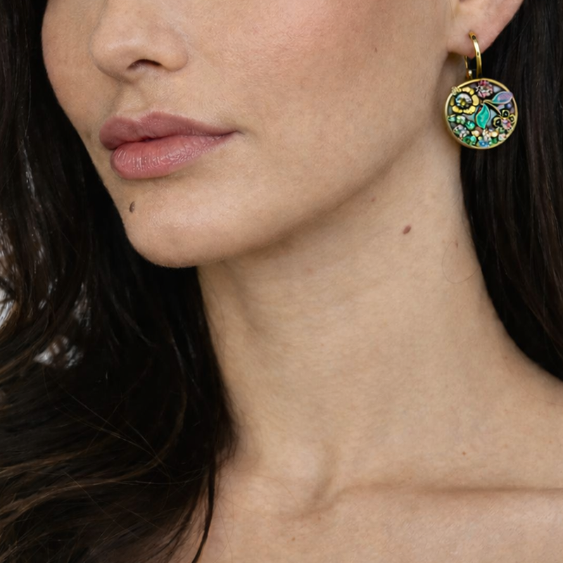 Rose & Turquoise Garden Circle Earrings