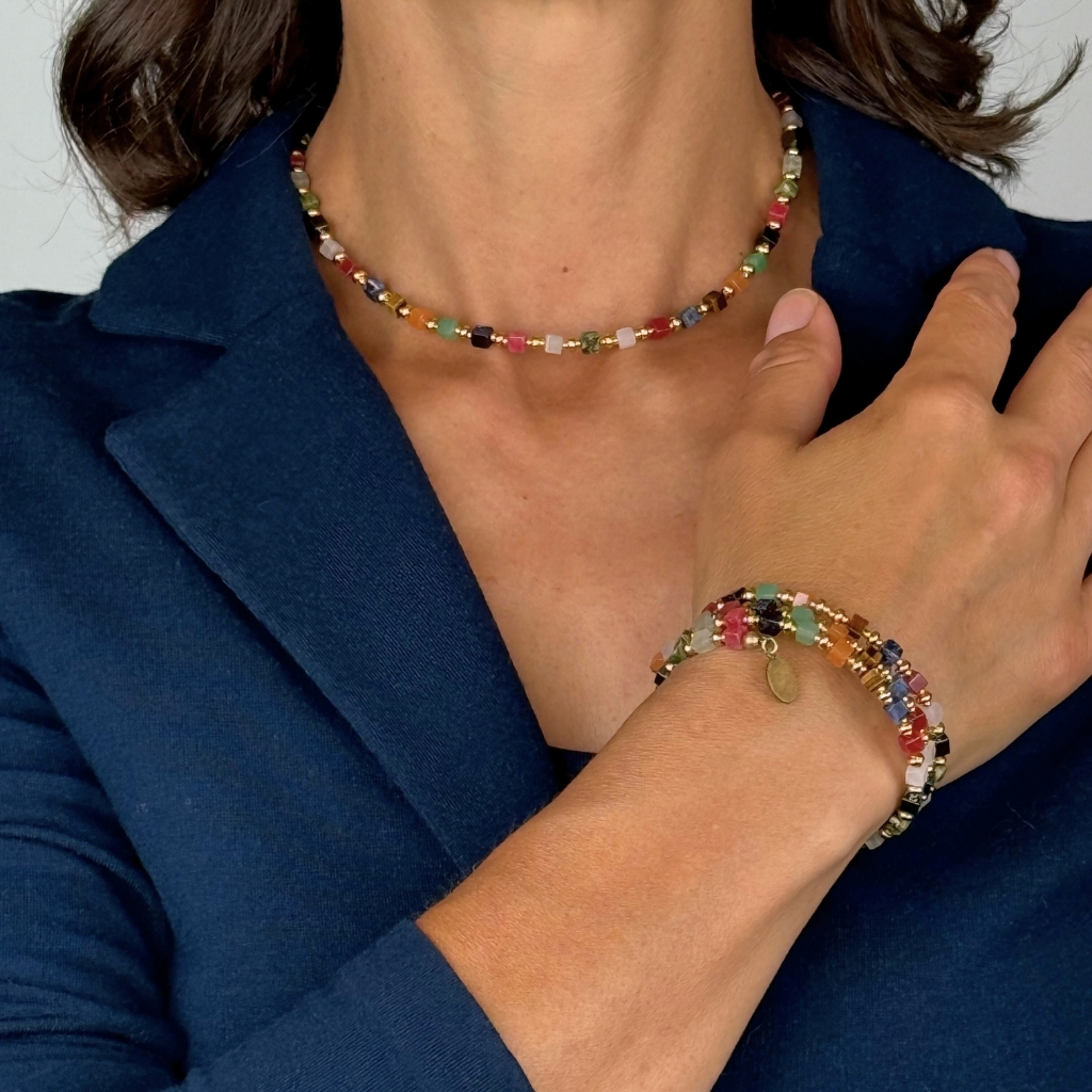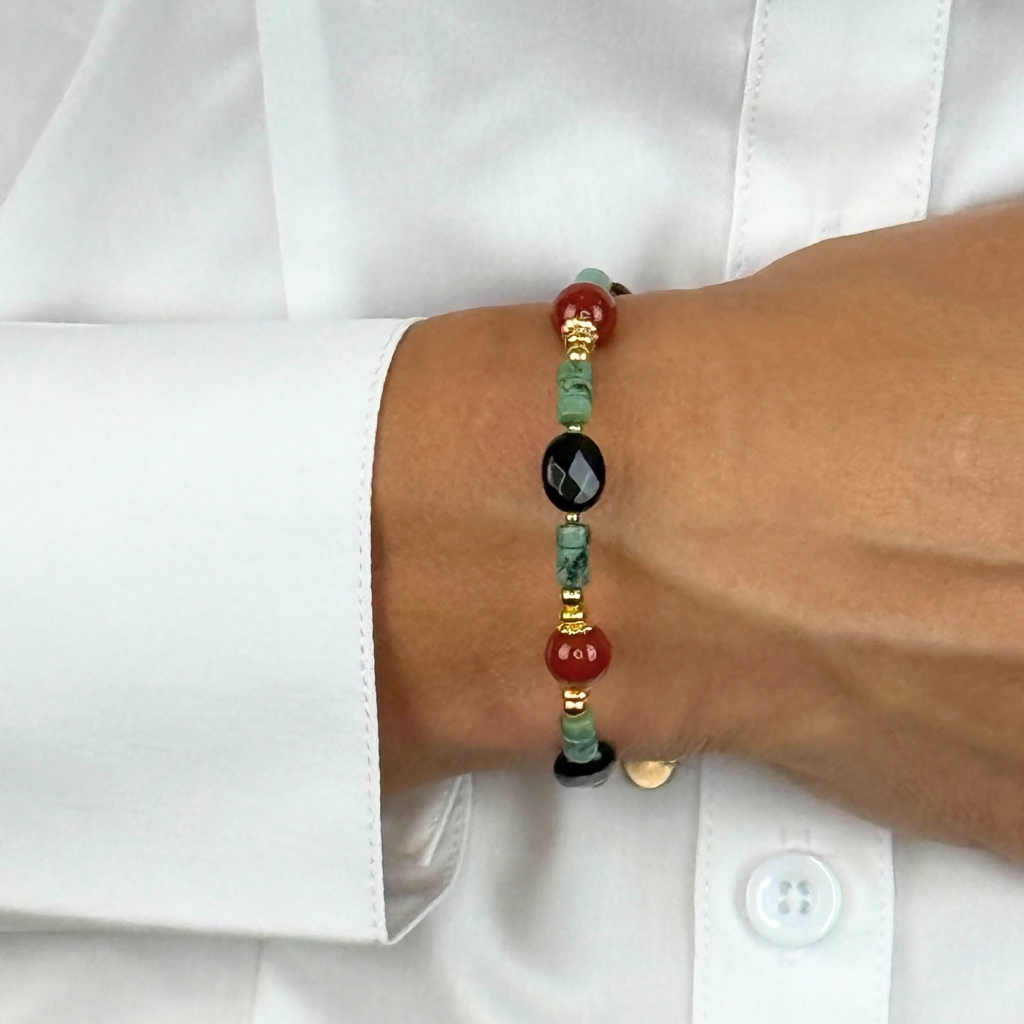 Rustic Gemstone Beaded Memory Wire Bracelet