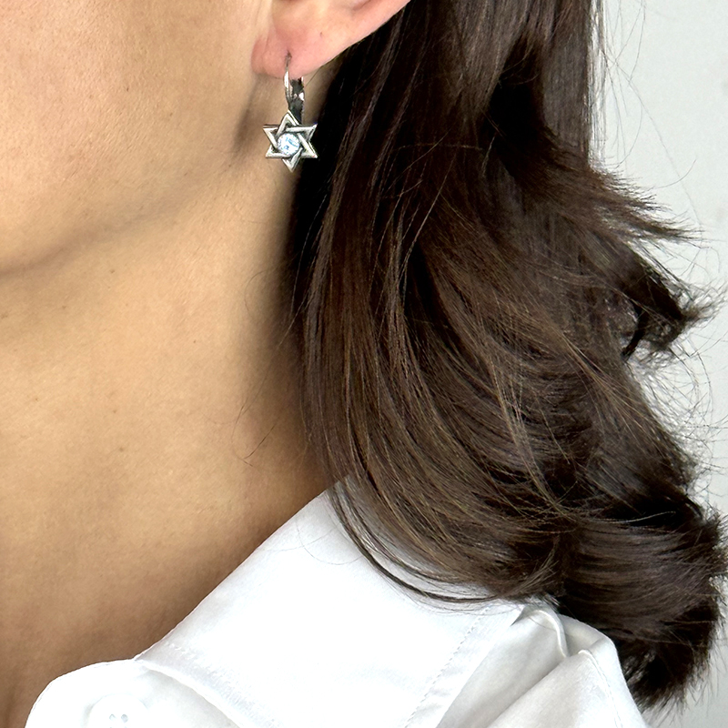 Silver Star of David cocktail ring with Swarovski crystals, handmade at Michal Golan studios USA