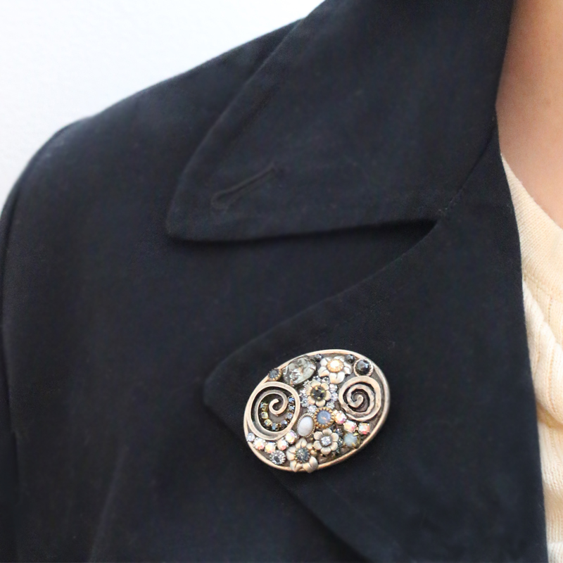 Gemstone Fleur de Lis Brooch and Earrings Set