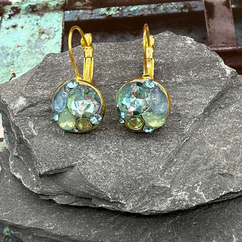 -Materials: Crystals -Metal: 24k gold electroplated over brass -Size: 0.6″ long -Lever back -Complimentary gift wrapping -Handmade in our NYC studio