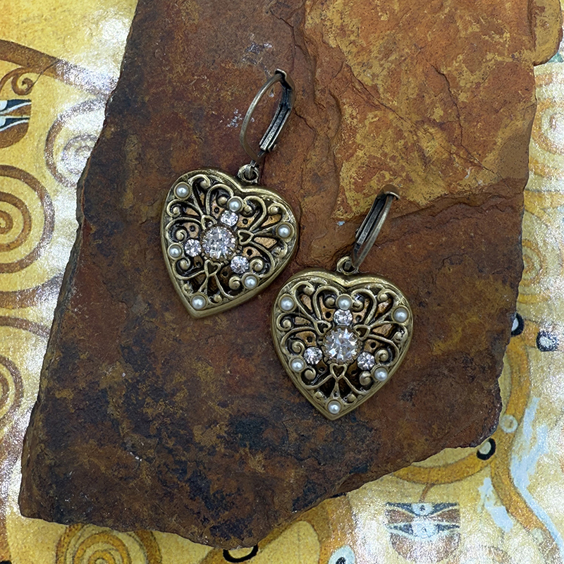 -Swarovski crystals, hematite – Brass electroplated with 24k Gold -Handmade in NY -Item ships in a gift bag