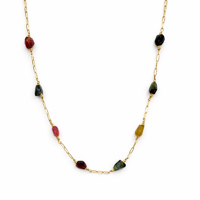 -Materials: Tourmaline -Metal: 24K gold electroplated over brass -Size: Chain adjustable 16-20″ -Complimentary gift wrapping -Handmade in our NYC studio