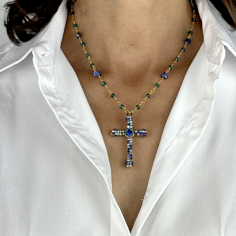 -Materials: Swarovski crystals -Metal: 24k gold electroplated over brass -Size: Chain adjustable 16-20″, pendant 2.25″ -Complimentary gift wrapping -Handmade in our NYC studio