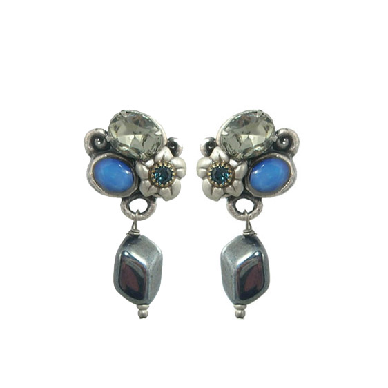 -Materials: Blue lace agate, hematite, crystals -Metal: Sterling silver electroplated over brass -Complimentary gift wrapping -Handmade in our NYC studio
