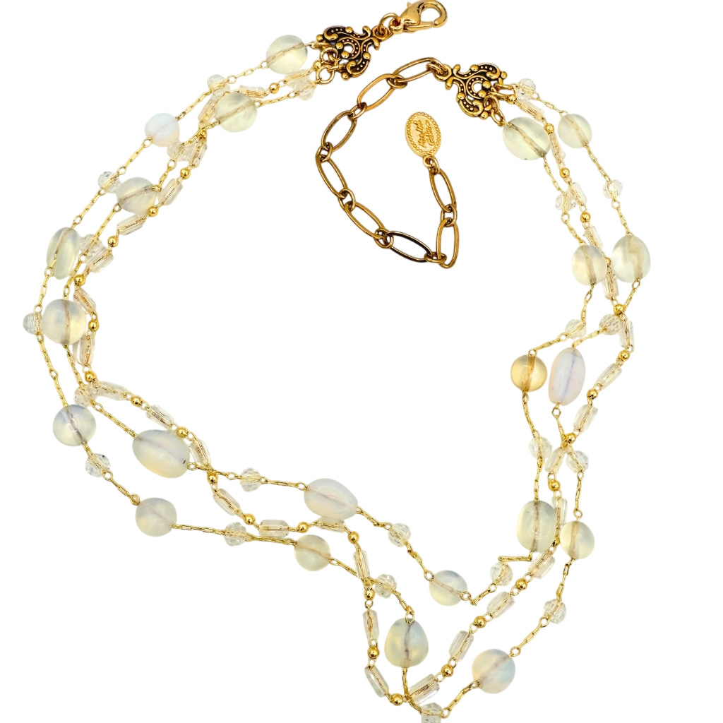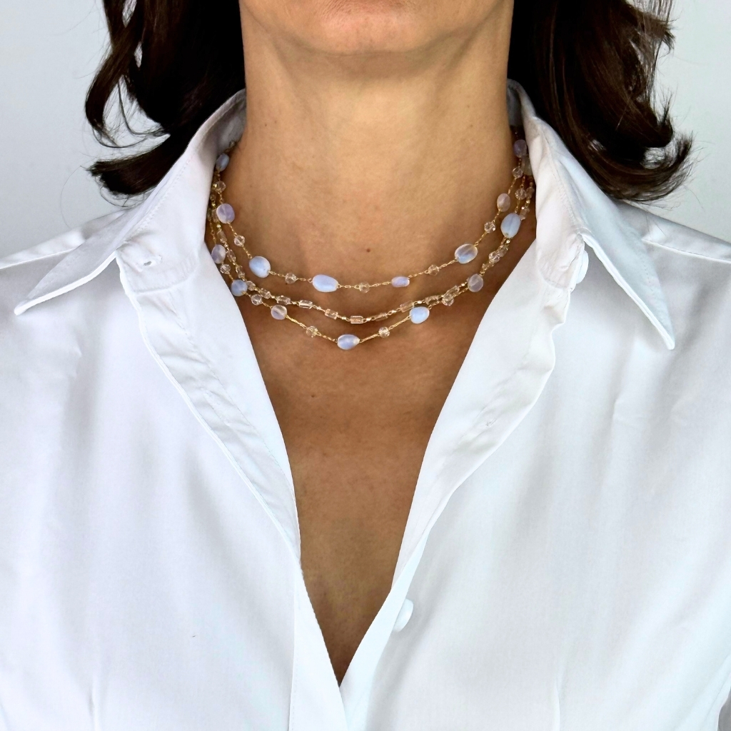 -Materials: Moonstone -Metal: 24k gold electroplated over brass -Size: Chain adjustable 14-18 -Complimentary gift wrapping -Handmade in our NYC studio