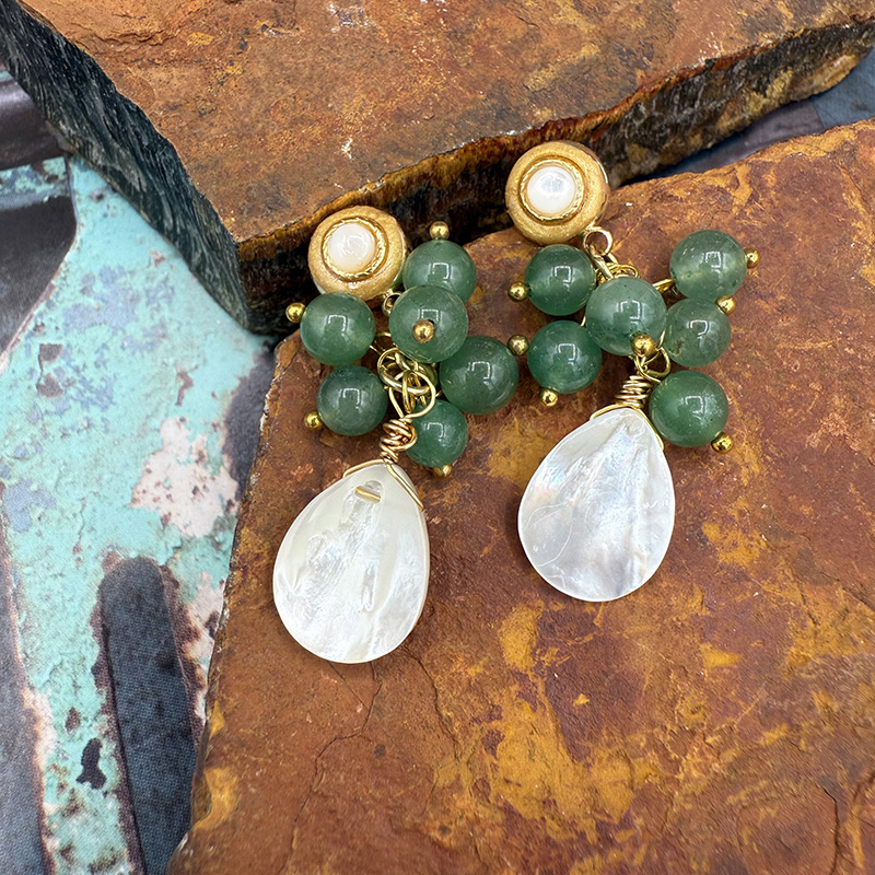 Green Aventurine & Pearl Cluster Earrings