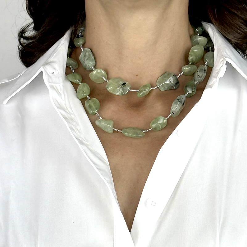 -Materials: Natural rutilated quartz -Size: 32″-36″ -Handmade in our NYC studio -Complimentary gift wrapping