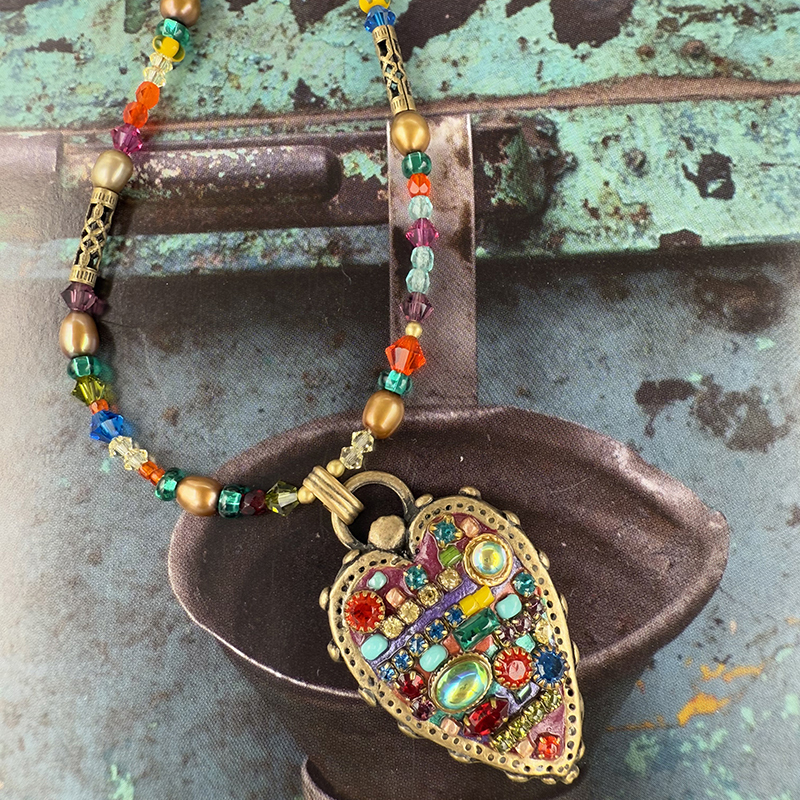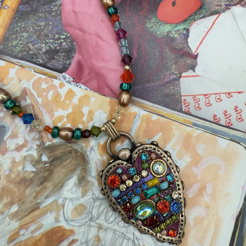 This heart pendant is like none you’ve ever seen, from the modern elongated shape to the rainbow beads.