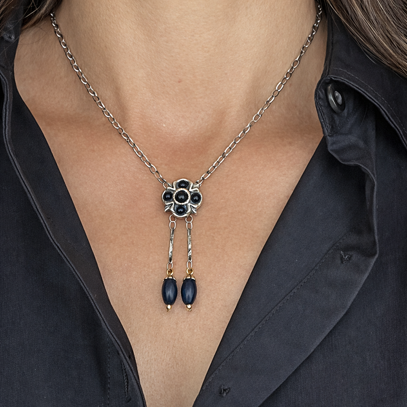 -Materials: Onyx -Metal: Sterling silver electroplated over brass -Size: 16″ chain not adjustable -Lobster claw clasp -Handmade in our NYC studio -Complimentary gift wrapping