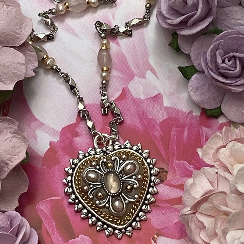 -Materials: Rose quartz, freshwater pearls
