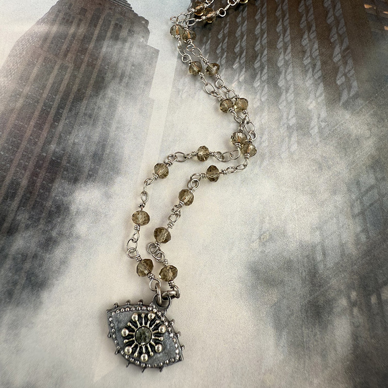 Silver & Green Evil Eye Necklace