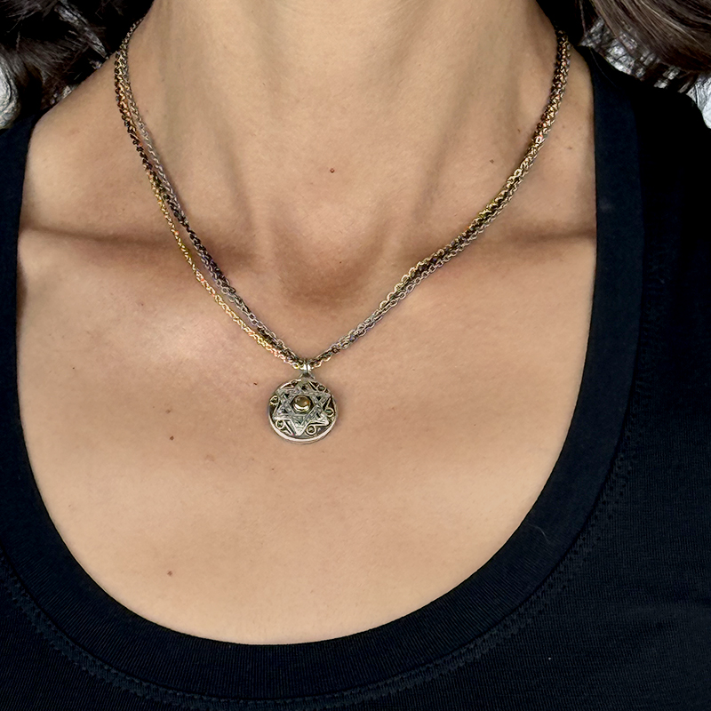 Silver star of david pendant on triple chain necklace