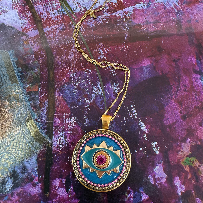-Materials: Crystals -Metal: 24k gold electroplated over brass -Size: 1.25″ pendant, 16–20″ long -Handmade in our NYC studio -Complimentary gift wrapping