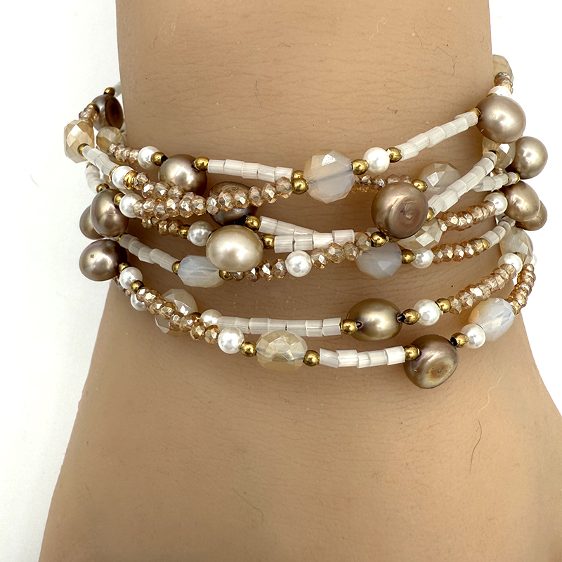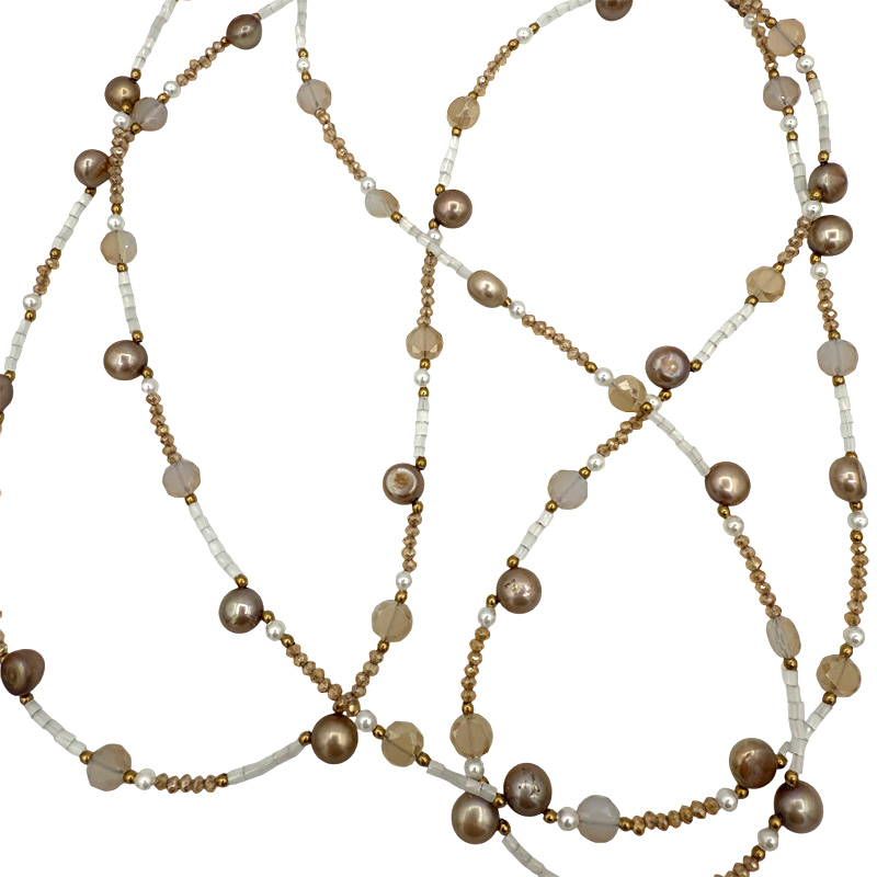 -Materials: Glass, freshwater pearls -Size: 54″–58″ long -Can be worn layered as a bracelet -Handmade in our NYC studio -Complimentary gift wrapping